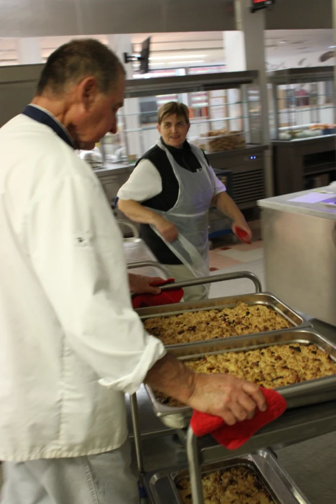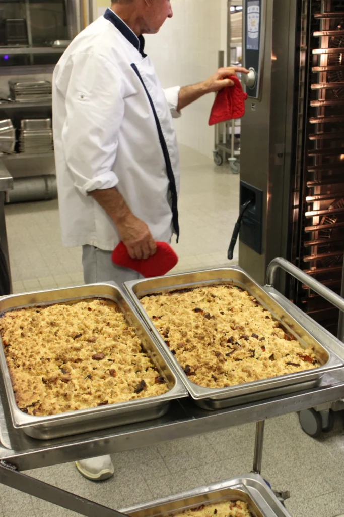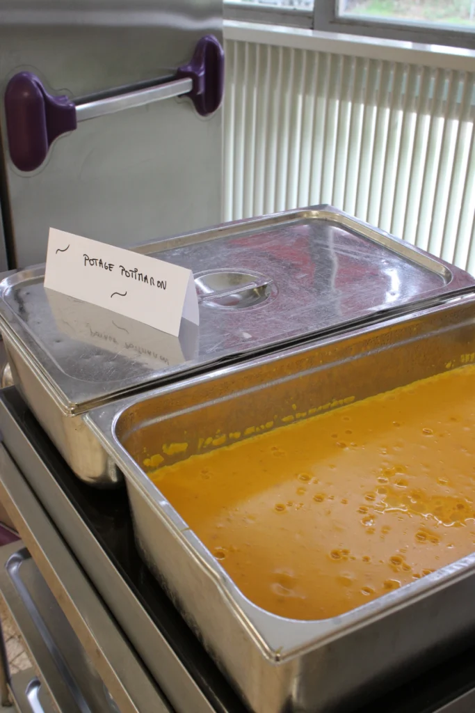 Les convives de Cibeins ont eu le plaisir de déguster un repas savoureux, mis en œuvre par l’équipe restauration avec des produits de saison issus de nos territoires. Au menu cette année : velouté de potimarron et son crumble salé, quenelle de carpe de la marque Poissons de Dombes portée par l’APPED (Association de Promotion des Poissons des Etangs de la Dombes), sauce Geoffroy et tarte Bressane au sucre.