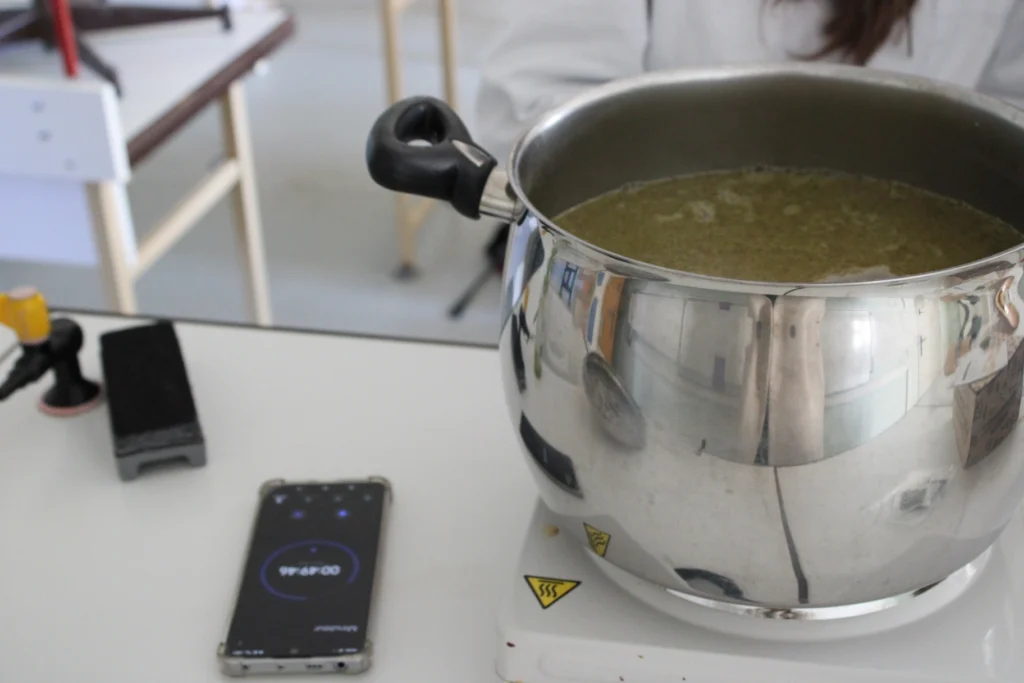 Répartis en 5 groupes de 4 élèves, l’atelier s’est déroulé en plusieurs étapes. Les élèves ont commencé par la cuisson des céréales suivie de la filtration pour extraire le mout.