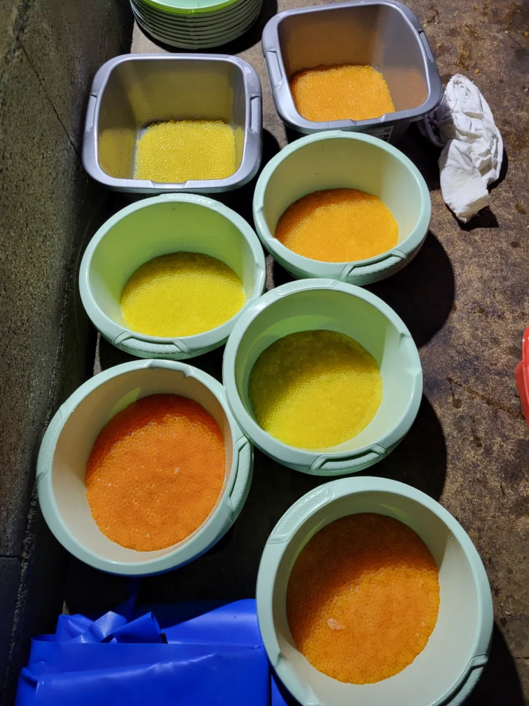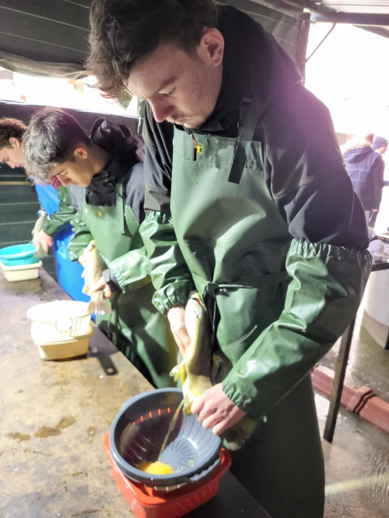 Cette opération consiste à masser délicatement l’abdomen des femelles pour qu’elles libèrent leurs ovocytes, que l’on féconde ensuite avec la laitance des mâles. Un exercice rondement mené par nos élèves, qui ont fait preuve d’un grand professionnalisme !