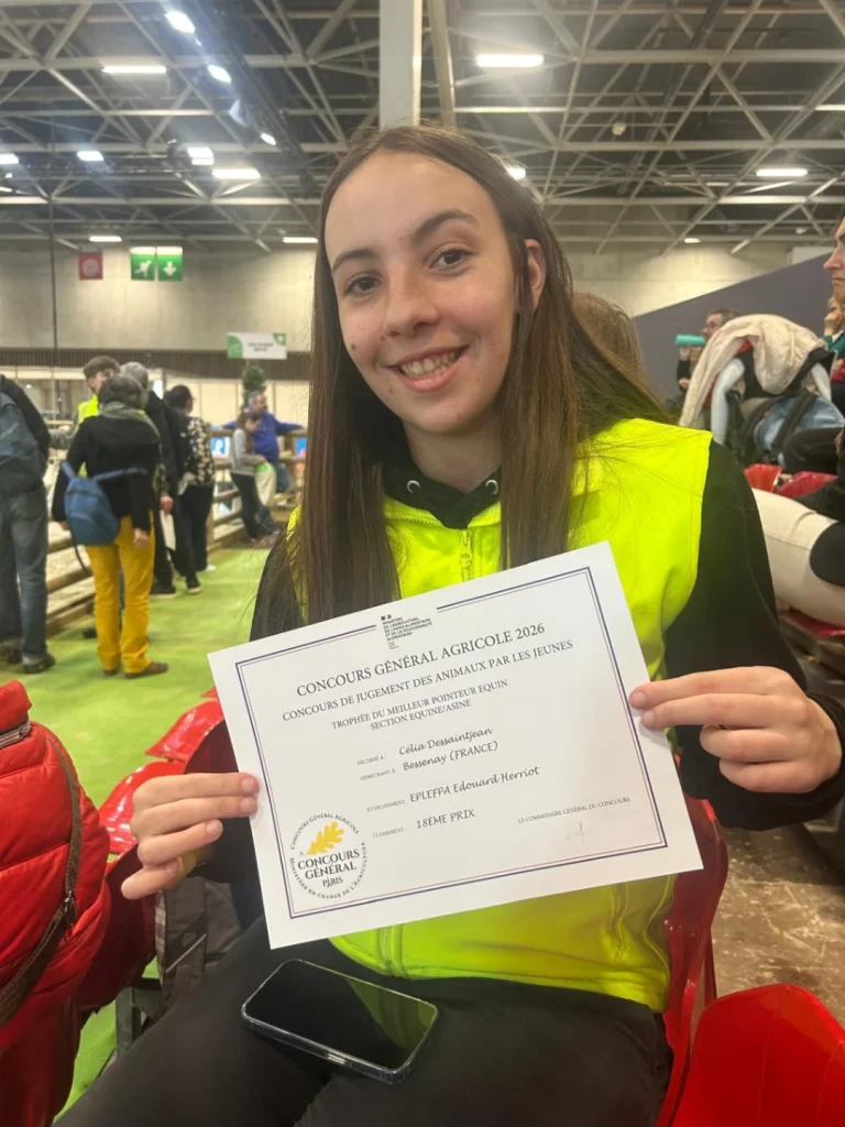À la fin de l’année 2025, Célia, élève en deuxième année de BTSA Productions Animales , a participé à un concours de pointage équin encadré par le lycée. L’objectif était de se classer en tête, permettant au participant avec le moins de pénalités de gagner une place pour la finale nationale à Paris.